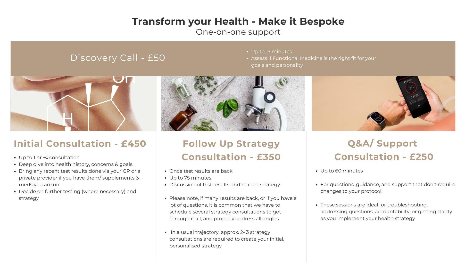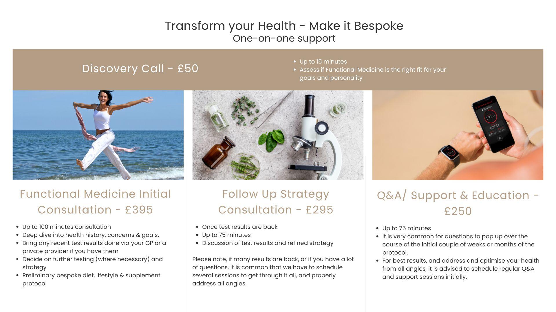 - Preliminary bespoke diet, lifestyle & supplement protocol